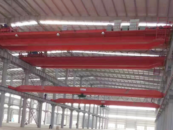 單梁橋式起重機是橫架于車間、倉庫和料場上空進行物料吊運的起重設備。由于它的兩端坐落在高大的水泥柱或者金屬支架上,形狀似橋。橋式起重機的橋架沿鋪設在兩側高架上的軌道縱向運行,可以充分利用橋架下面的空間吊運物料,不受地面設備的阻礙。