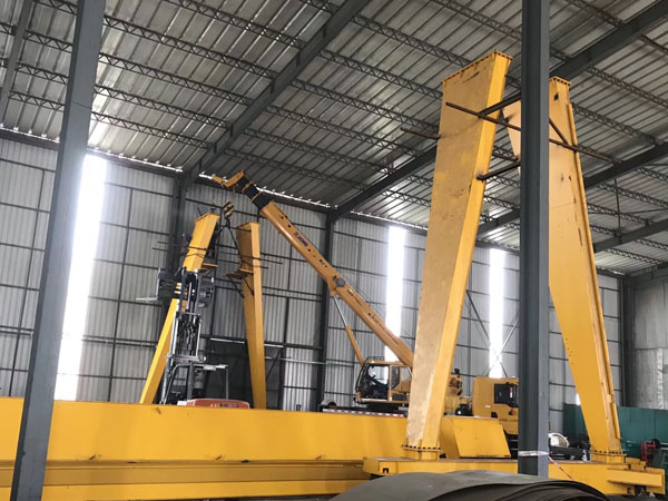門式起重機(又稱龍門起重機)是橋架通過兩側(cè)支腿支撐在地面軌道上的橋架型起重機。在結(jié)構(gòu)上由門架、大車運行機構(gòu)、起重小車和電氣部分等組成。有的門式起重機只在一側(cè)有支腿,另一側(cè)支撐在廠房或棧橋上運行,稱作半門式起重機。門式起重機的門架上部橋架(含主梁和端梁)、支腿、下橫梁等部分構(gòu)成。為了擴大起重機作業(yè)范圍,主梁可以向一側(cè)或兩側(cè)伸出支腿以外,形成懸臂。也可采用帶臂架的起重小車,通過臂架的俯仰和旋轉(zhuǎn)擴大起重機作業(yè)范圍。